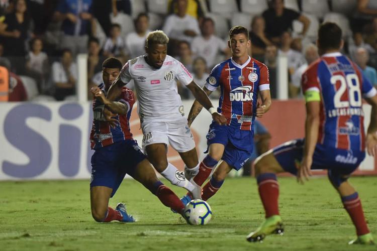 O Bahia perdeu para o Santos na noite desta quinta-feira, 31, na Vila Belmiro, e amargou a terceira derrota consecutiva no Brasileirão Série A. Após pênalti cometido por Juninho em Marinho, o colombiano Carlos Sanchez marcou o único gol da partida. O VAR, mais uma vez, foi protagonista na partida, sendo utilizado para anular dois gols na partida, um de cada time, de Eduardo Sasha, para o Peixe, e de Juninho, para o Tricolor.